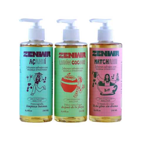 Zenwa presenta Los Tres Rituales, un viaje sensorial a través de los elementos de la naturaleza: selva, océano y montaña. Este set reúne tres jabones botánicos artesanales que equilibran cuerpo y alma con fórmulas limpias, veganas y cargadas de intención.